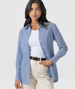 Saint + Sofia Women’s Reagan Tie Shirt – Blue Stripe | Blue Stripe