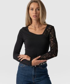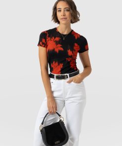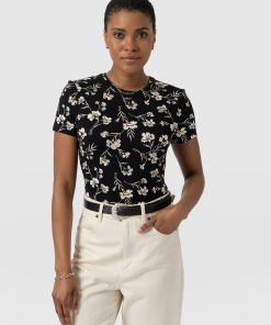 Saint + Sofia Women’s Austen Crew Neck Tee Short Sleeve – Black Spring Floral | Black Spring Floral