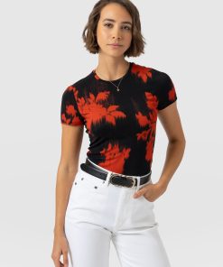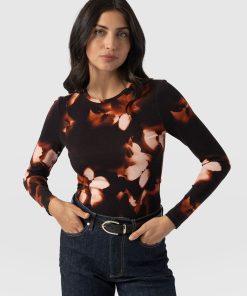 Saint + Sofia Women’s Austen Crew Neck Tee Short Sleeve – Orange Fade Floral | Orange Fade Floral