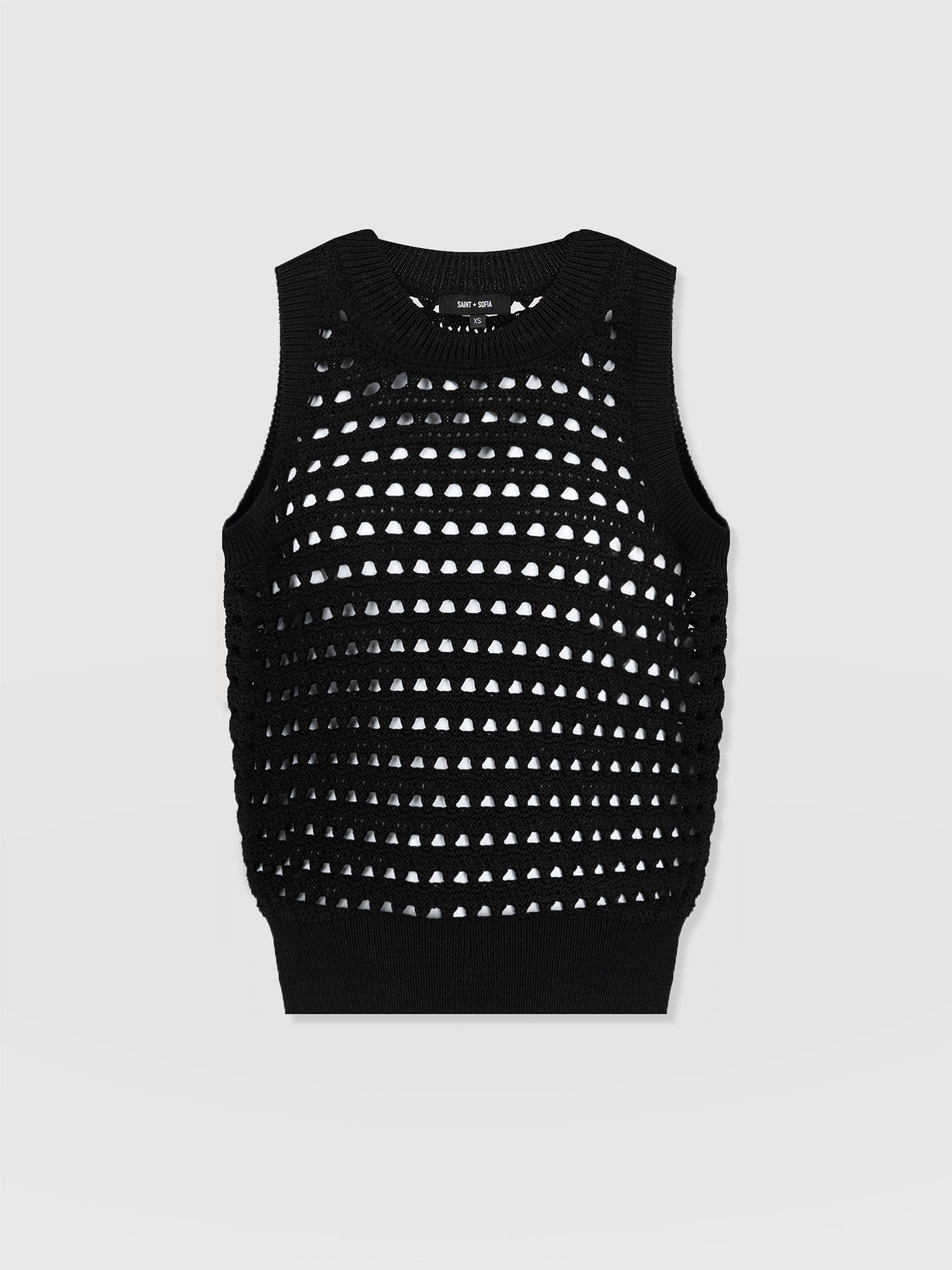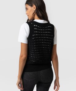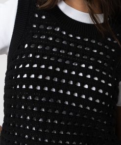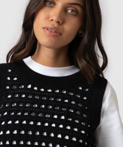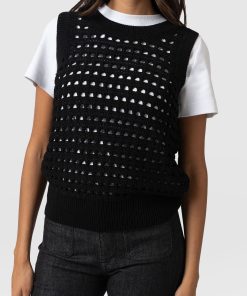 Built for layering, the Adler Sleeveless Knit in black is perfect for those transitional months. It’s woven to an open-knit that creates a lace hole mesh texture and is cut to a sleeveless silhouette to leave the arms of your undershirt on show. Style yours with a white button-up and a pair of Maeva Skinny jeans, and let the ribbed hem cinch your waist.