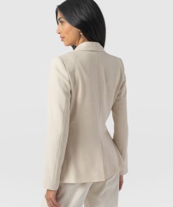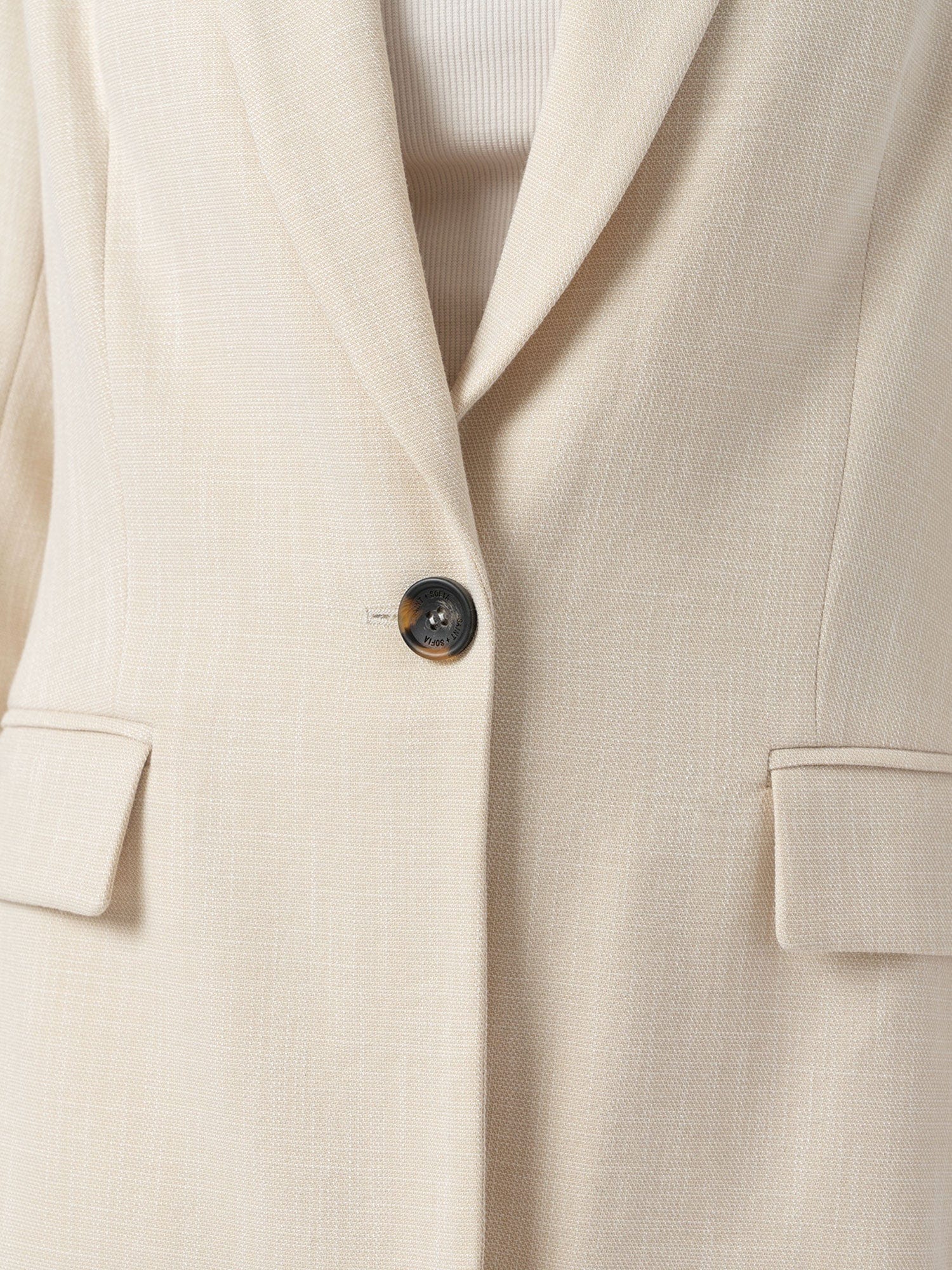 The Argent Blazer in cream is a beautifully simple single-breasted design that’s cut to a relaxed fit from a planet-friendly material and features a slender shawl collar. Slightly padded at the shoulders, it helps to accentuate your figure against the trimmed waist. Each style is masterfully tailored by hand in our studios in Europe, where artisans ensure the highest quality and a chic finish with horn buttons.