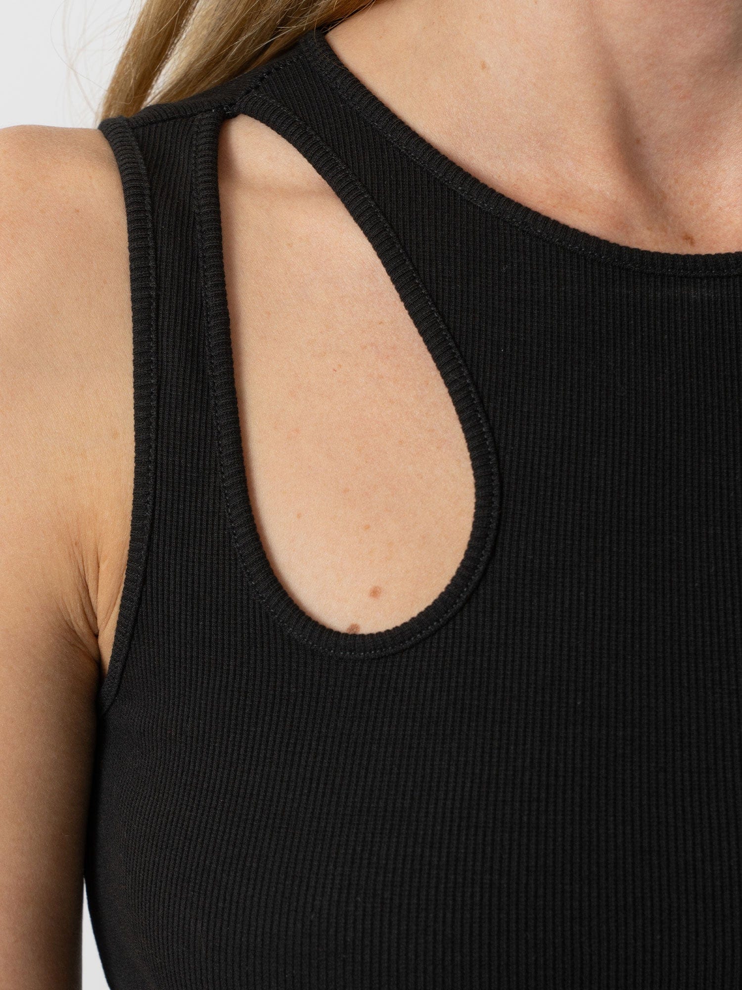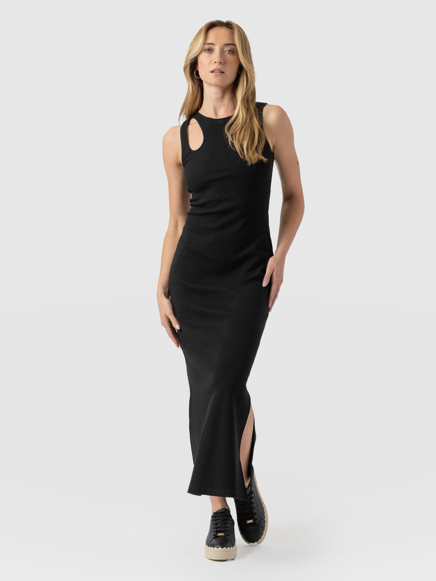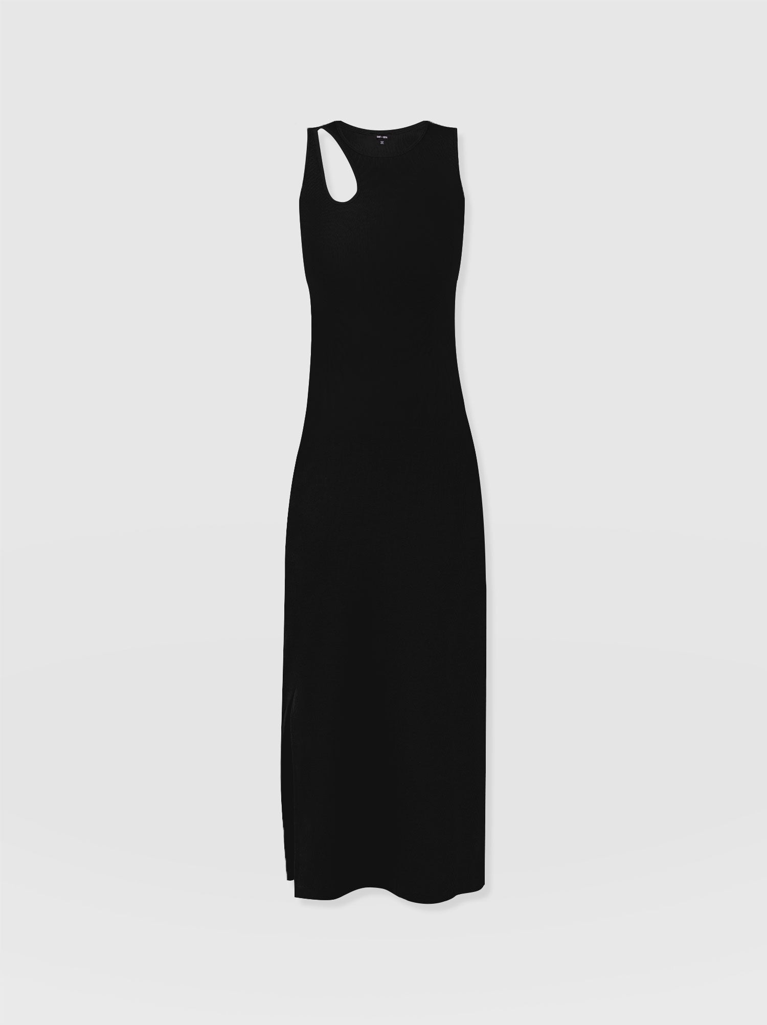 If you’re looking for easy-to-wear styles with statement finishes, the Axel Cut Out Dress in black is the perfect design for you. This staple midi is masterfully handmade using stretch-infused organic cotton and is designed to hug your figure with a slim, defining fit. A sleeveless bodice is crowned by a classic crew neckline alongside a teardrop cut-out that leaves a glimpse of skin on show. As for the skirt, that’s detailed with two side splits for a chic look. Style yours with slides when the sun starts to shine.