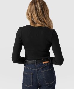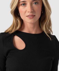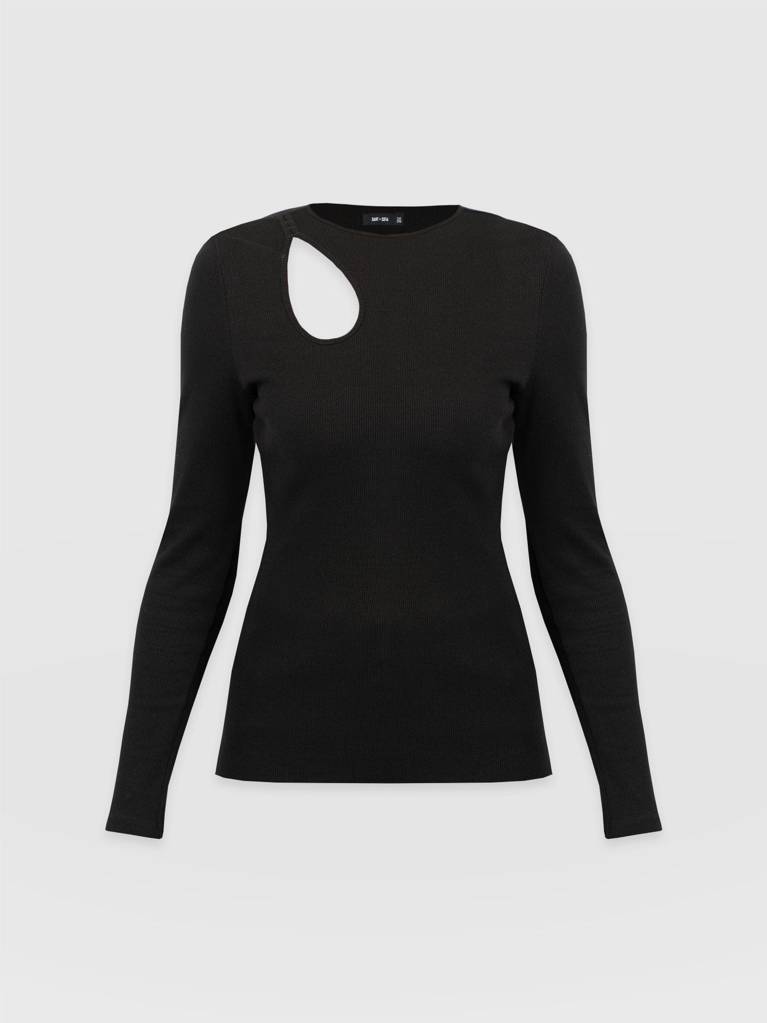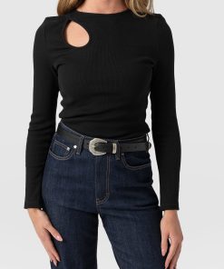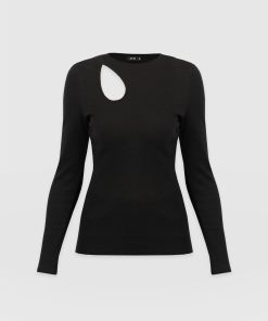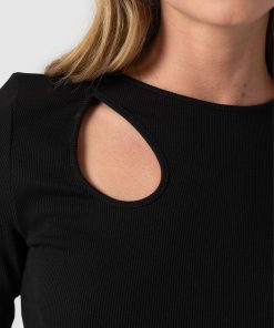 Saint + Sofia Women’s Axel Cut Out Long Sleeve Tee – Black | Black