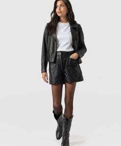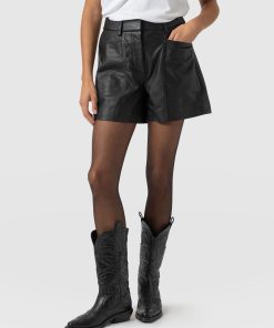 Saint + Sofia Women’s Bonham Leather Short – Black | Black