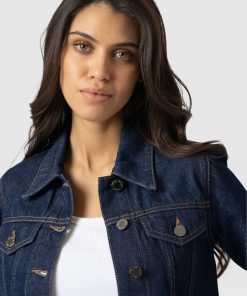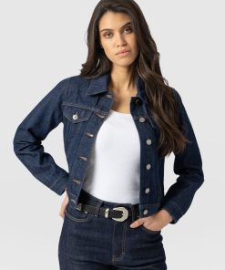 A contemporary layer for on-trend looks, the Bowie Denim Jacket is a lightweight button-up style with a cropped finish and collared neckline. Made by hand using dark wash denim, it’s the perfect design for creating double-denim outfits with our Bowie Jeans – but if that’s not your thing, it looks equally chic with dresses and skirts. And, with front and back yoke detail and a panelled structure, it helps to add tailored defintion to your frame.