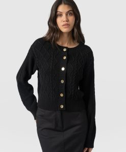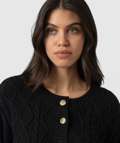 A cable knit-textured cardigan cut to a slim-fitting silhouette and stitched using planet-friendly organic cotton. The Bronte cardigan is the perfect layer to warm you through the transitional seasons and features ribbed trims to ensure you stay cosy amid light breezes. Wear yours open over a plain white tee or closed to let the branded gold-toned buttons glimmer at the front.