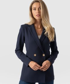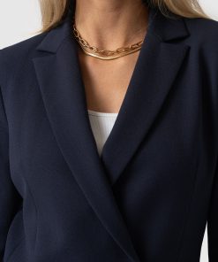 A classic, double-breasted blazer in navy that’s a wardrobe classic. We designed this with a comfortable, smart fit with plenty of room. We made it with the softest crepe fabric we could find. We’re pretty sure you’ll be wearing this in years from now. Each style is hand tailored for the perfect finish. It can easily be styled up for work or down for weekends. Pair with jeans or pants. (it’s such a popular style we’ve made it in a few colours).