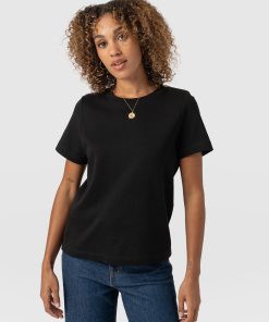 A classic to add to your capsule wardrobe – the Chelsea Crew Neck Tee in black is designed to form the base of any outfit. Spun from pure cotton, it’s shaped to a relaxed, boxy silhouette and topped by a crew neckline with a wide rib trim. Tuck it into a pair of black pants for a smarter aesthetic, or slip it on with our Apartment Pant for a loungewear outfit that’s perfect for weekends at home.