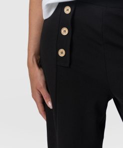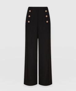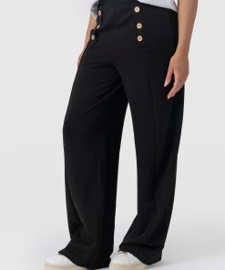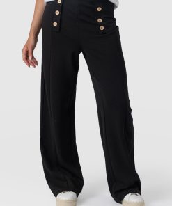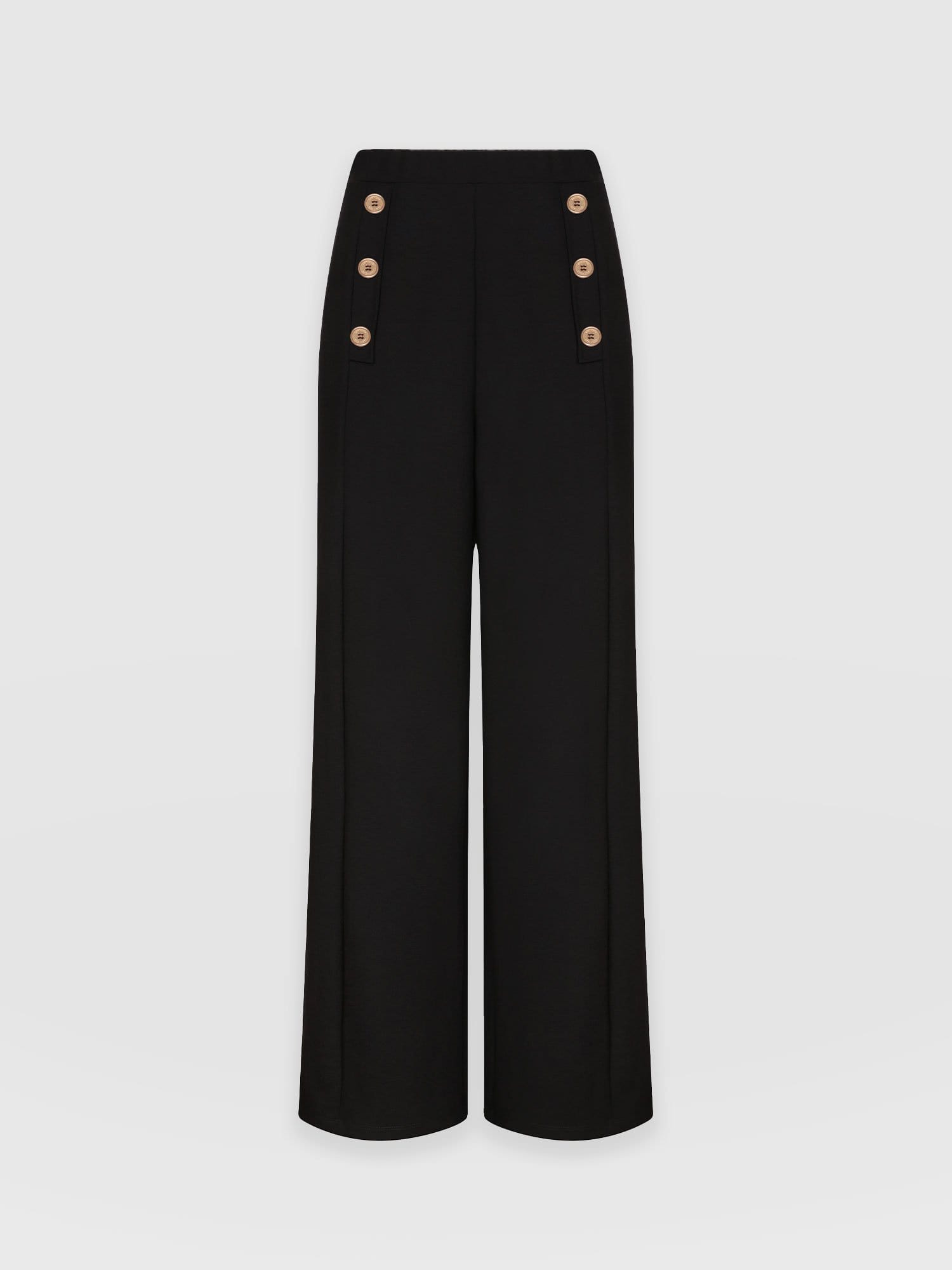 A classic wide leg pant style, made with the softest Ponte di Roma fabric from Italy and gold button detail. High-waisted, comfortable and relaxed with an elasticated waistband finish and pull-on construction. We love the soft Ponte di Roma fabric because its wrinkle and crease free with a beautiful drape. Each style is handmade in our studios with discrete stitching. Perfect for work or weekends, style up with heels or down with sneakers or sandals.