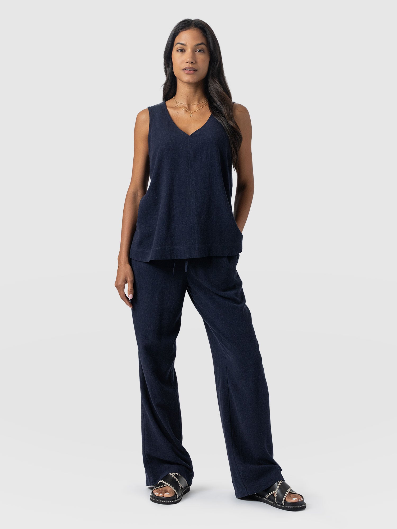 Saint + Sofia Women’s Corinne Linen Pant – Navy | Navy