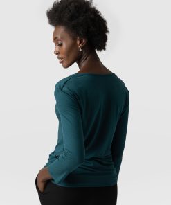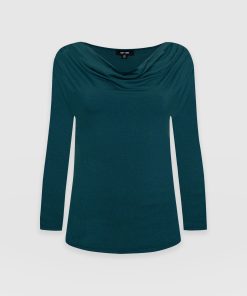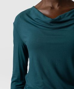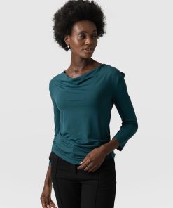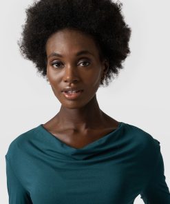 The cowl neck tee in deep green is an easy, instantly wearable style 3/4 length sleeves for comfort. It’s a perfect alternative to the classic crew or v-neck tee styles. Comfortable and stylish with a silky smooth hand feel. We designed it with a relaxed, easy fit and made it with a sustainable Birla Viscose fabric. Pair it with jeans or leggings for a casual look or with pants and heels with a short leather jacket for work (with some attitude).