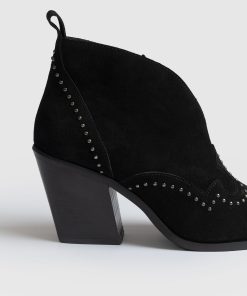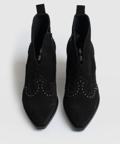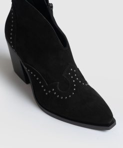 Welcome a bit of Western style into your wardrobe with the Dallas studded ankle boot. Made with soft suede and finished off with mini gold studs to accent the western inspired style. A slimline ankle boot with pointed toe and chunky heel, this on trend shape works well with anything from dresses, to skirts or jeans.