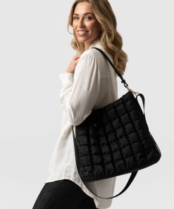 The Darcey Puff Tote Bag in black is a beautiful quilted shoulder bag that’s perfect for work days or weekends. Finished with a chic leather strap and a zipper on the back of the bag for ease of use. It features convenient internal pockets to keep your items safe and an extra internal bag for your essentials. We’ve added hot press branding and a D ring on the inside of the bag. This bag is ideal for daily wear while you’re on the go. Limited number available.