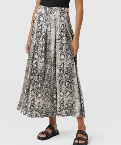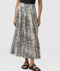 Taking a walk on the wild side, our Eliza skirt boasts a monochrome snake print across its entire A-line silhouette. This serpent-inspired style is designed to sit at your waist with a flat waistband before falling into box pleats, which help to create a breezy finish. Wear yours with a black tee, chunky knitwear for warmth, and a pair of Billie Rock Boots to create a look with edge.