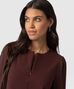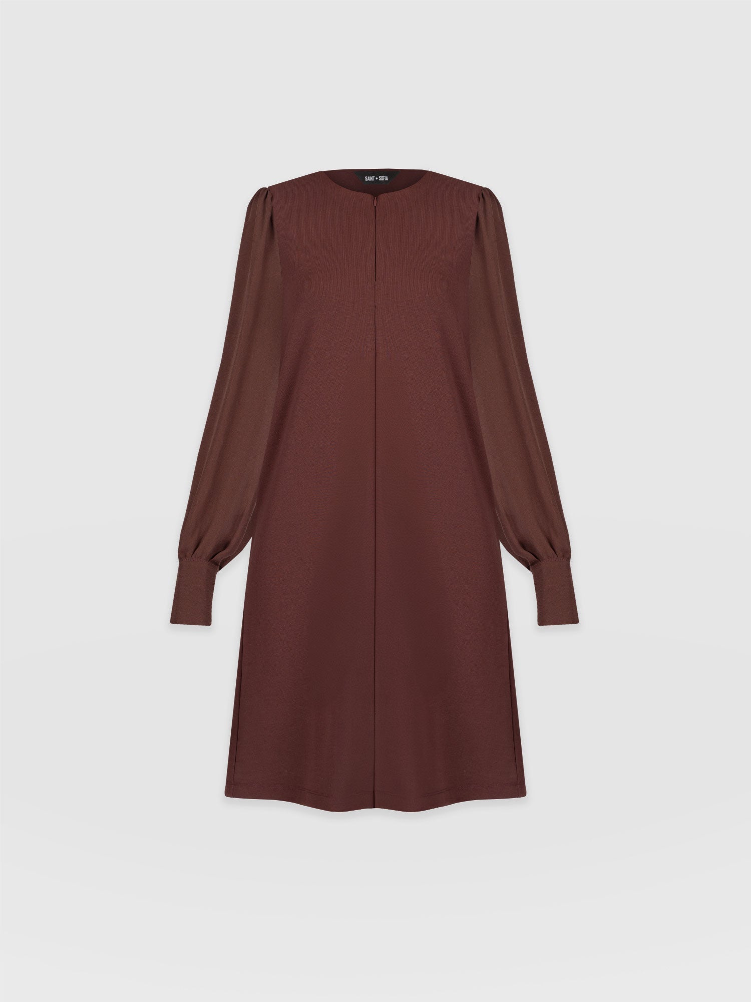 The Esme Zip Up Dress in maroon is the perfect showcase of elegance paired with functionality. Its jersey body and breezy georgette sleeves are masterfully handmade by skilled artisans in Europe to ensure the highest quality finish and an instantly comfortable frame – while the zip-front fastening offers flexibility with styling, meaning you can easily switch between necklines depending on the occasion. Pair yours with chunky boots to create a look with attitude.