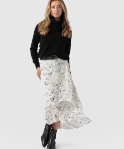 The Etta Layered Skirt in White Floral is made for moments of effortless elegance. It features a two-tiered midi design crafted from lightweight georgette fabric that creates a serenely graceful flow. The elasticated waistband at the back ensures a secure fit, while the flat front adds a polished touch. Style it with the Rib Cami, a pair of Sutton Slides, and the Molten Disc necklace for an elevated look.