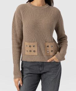This season, we delved into the archives to reintroduce a classic. The rib knit sweater returns with a new metallic edge in the form of silver eyelets that decorate leather patch pockets at the front. Each pull-over design is handmade in Europe by artisans who use a sumptuously smooth wool and cashmere blend to create a chunky rib finish. Pair this crew-neck piece with the Etta Layered Skirt or Langley satin pants – whatever style suits you.
