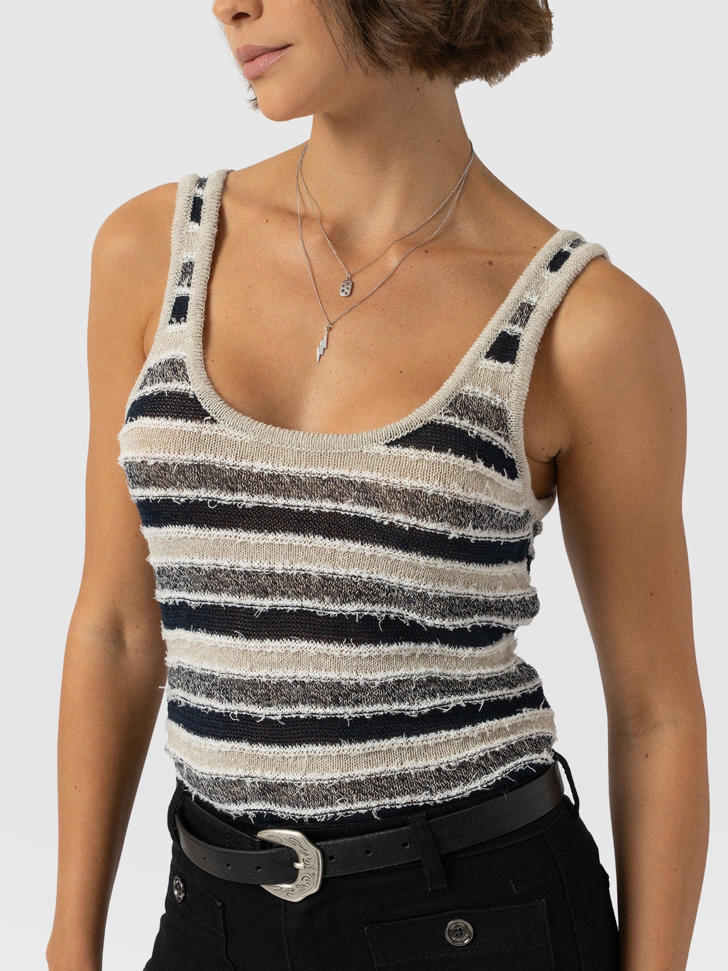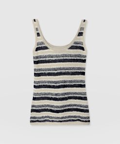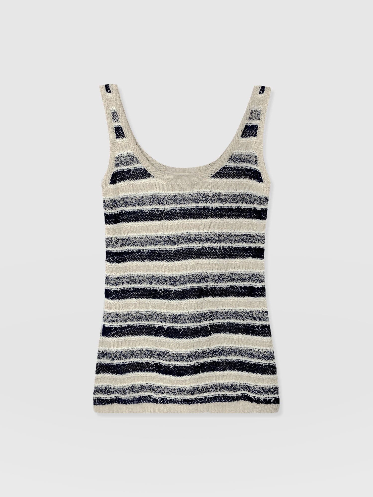 The Fearne Knit Cami in Blue Stripe is a classic vest style with a plunging scoop neckline and wide, comfortable straps. It’s handmade using soft fibres of wool and silk that create a textured finish and decorated with contrasting stripes for an instantly wearable look. Pair yours with jeans and sneakers or the linen Corinne Pant and sandals when the sun starts to shine.