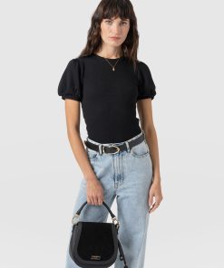 The Fearne Knit Tee is a casual classic. This lightweight knit is shaped into a classic crew-neck but handmade with comfortable soft fibres of wool and silk. It offers an elevated take on the traditional tee. The design features gently ribbed cuffs for a warming look and textured stripes across the bodice for a unique look. Style yours with black Maeve Pants and boots for a style with a contemporary edge.