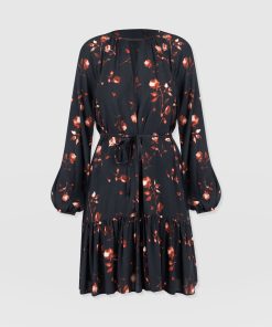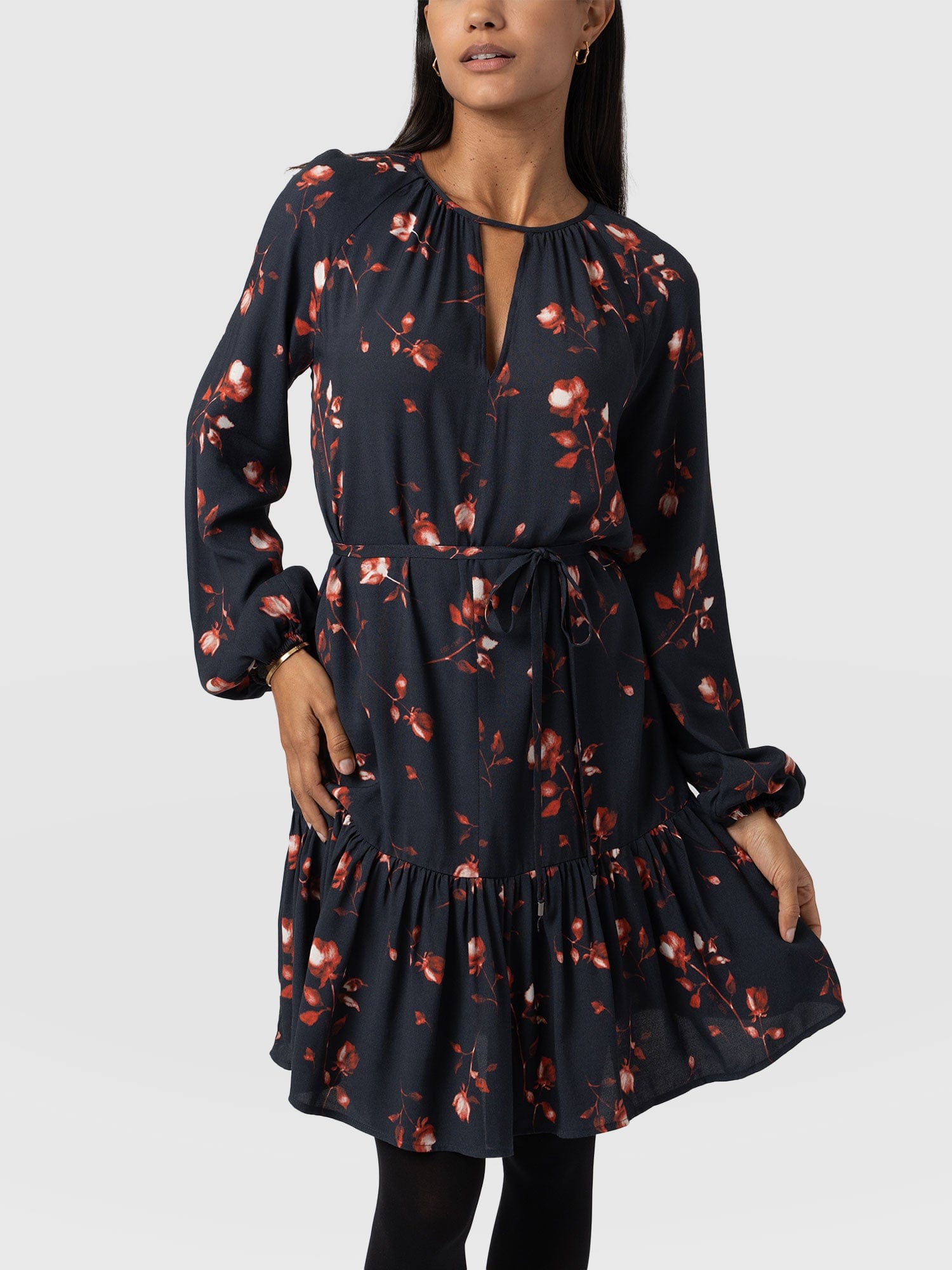 A seasonal mini with an elegant cut-out detail at the chest, the Fia Mini Tiered Dress in Dark Roses is the perfect design to add glamour to your winter wardrobe. It’s handmade using a lightweight viscose and trimmed with long sleeves that cinch at the cuffs for a bishop effect. At the waist, a drawstring belt helps to sculpt your figure and creates a beautiful A-line silhouette alongside the tiered skirt. Dress yours down with boots and a jacket or up with heels and a clutch bag.