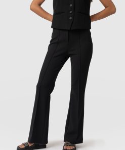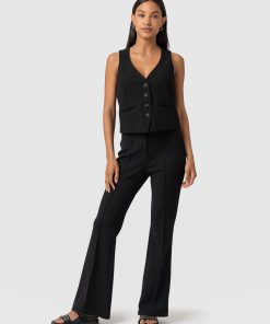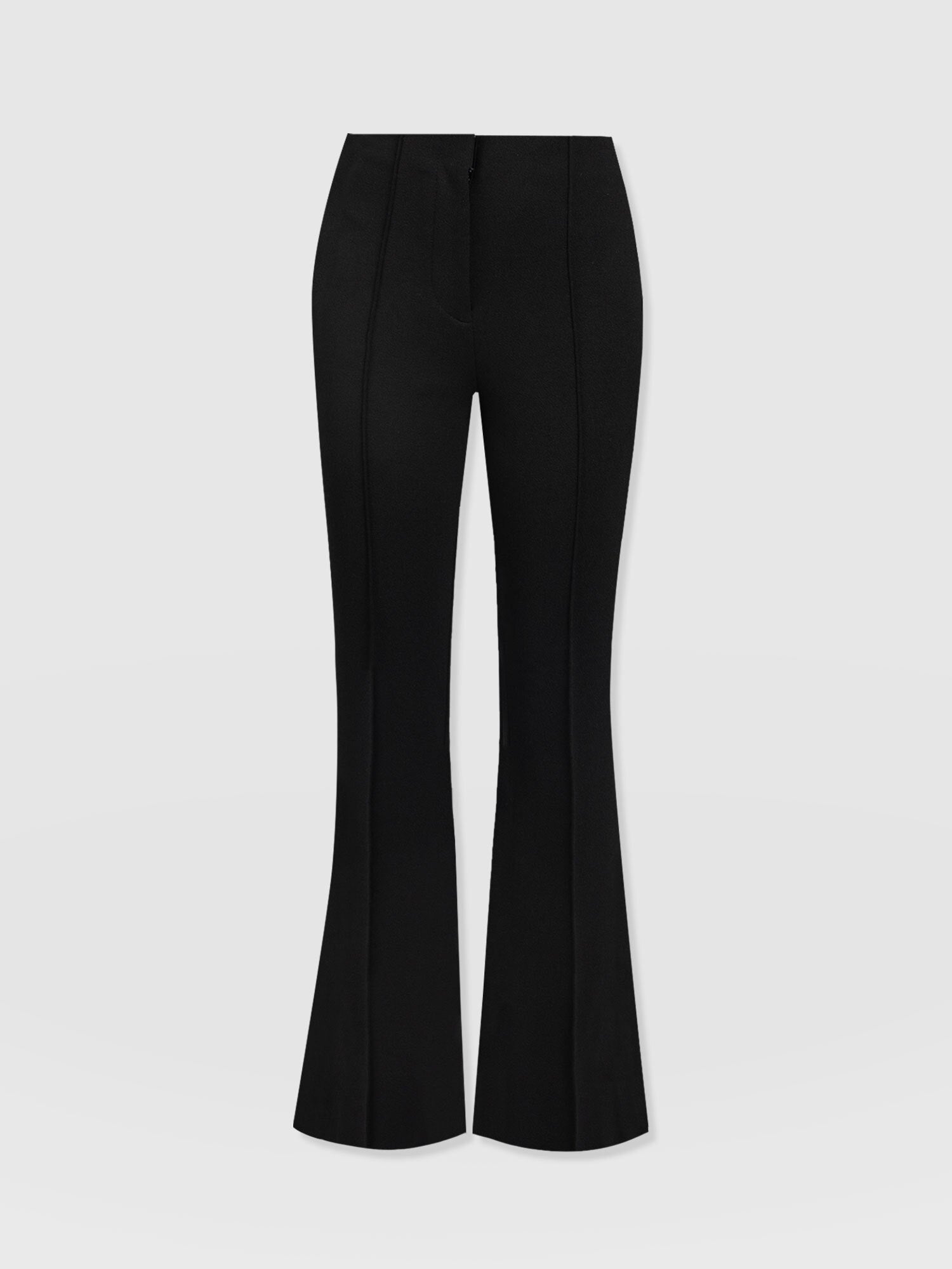 Designed with comfort and sophistication in mind, the Freya Flared Pants in black are made from a supporting stretch crepe for a comfortable and polished look. They’re cut to a high-rise waist and boast a slim fit before flaring out at the calf into bootlegs. Handmade in Europe by skilled artisans, they’re finished with a pintuck down the centre. Style yours with an Easy Tee and the Portland Sneakers by day and the Tilda Halter and heels by night.