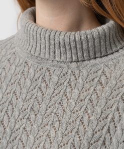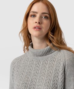 A beautiful cable sweater in grey with a relaxed, semi-fitted silhouette that has a soft and smooth (not scratchy) hand feel. Made with an Italian warming wool blend and designed with a delicate cable and garter stitch. Each style is designed in our London studios and made by hand in Europe in small numbers. Easy to care for and machine washable on a delicate setting. Wear over a vest or t-shirt and pair with jeans, pants or leggings for a smart casual look.