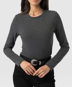 Bring interest to your daytime dressing with the Glen Crew Neck tee. Handmade with our charcoal jersey, it helps to elegantly elevate any daytime outfit. And shaped to a slim fit with long, bracelet-length sleeves, it works to flatter your frame. Pair with your favourite jeans for an everyday look or with the matching Keller Pants for a cosy loungewear vibe.