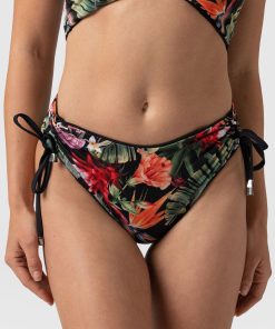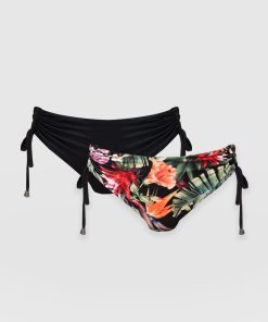 A beautiful bikini bottom in tropics prints as part of the Halina Bikini Set. This bikini bottom features a reversible design with tropics prints on one side and a sleek black colour on the other. Crafted with attention to detail using high-quality materials, it offers a comfortable fit.