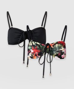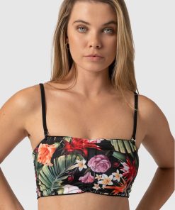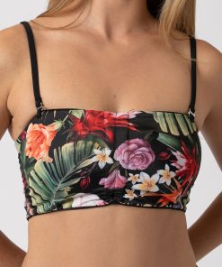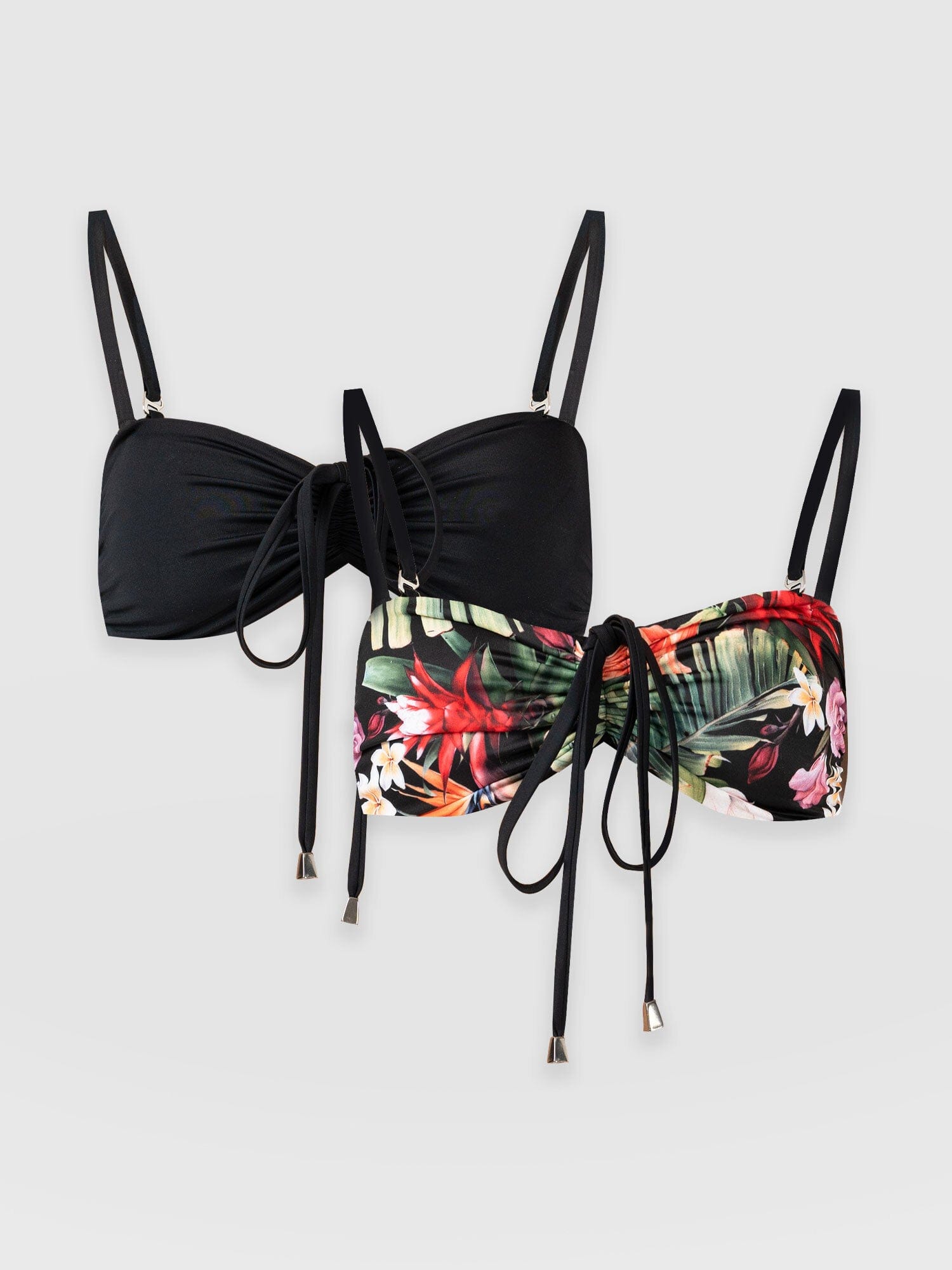 A beautiful bikini top in our unique tropics prints. The Halina Bikini Top is a blend of tropical paradise and classic elegance. This reversible bikini top features our tropics print and a sleek black side, allowing you to switch up your style effortlessly. Handmade with attention to detail using high-quality materials, it offers a comfortable and supportive fit with adjustable straps for a customised, secure feel.