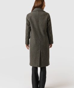 Elevate your winter wardrobe with the Hampton Coat in Olive Houndstooth – a luxurious, long-line, double-breasted overcoat crafted from soft Italian wool. The double breasted construction exudes a feeling of structure and polish. The check pattern makes this a fun and statement choice for winter. An outerwear staple, pair it seamlessly with our Cashmere Cream Skull Knitwear, Cambridge Paint in black and heeled cowboy boots for a sophisticated and cosy ensemble that’s perfect for the season.