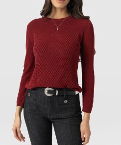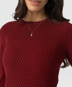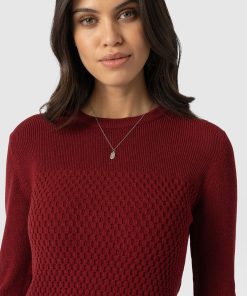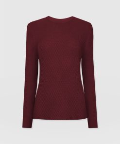 A beautiful rib knit sweater in burgundy. Designed for an elegant aesthetic and a stylish look, it uses a soft and eco-friendly viscose to create a honeycomb pattern across the front. Every style is made in our studios in Europe and finished by hand to ensure the perfect slim fit. Pair yours with jeans or leggings at the weekend for a relaxed look, or style with pants and heels for something more formal ahead of evenings out.
