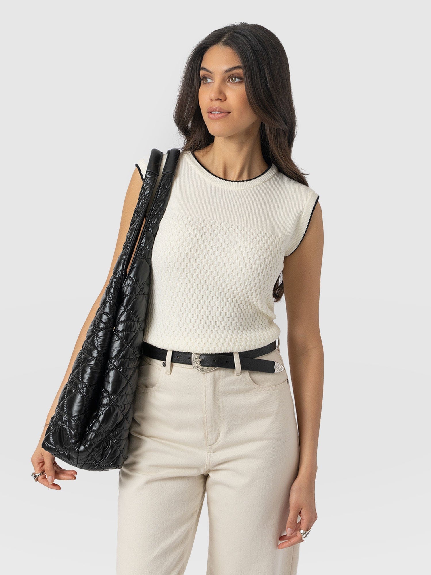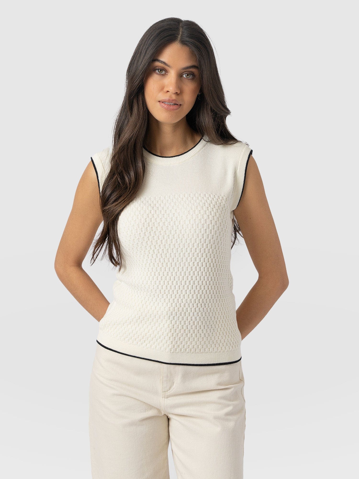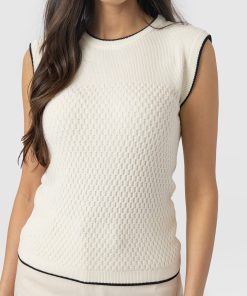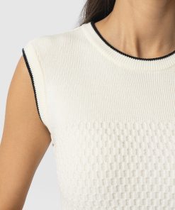 Saint + Sofia Women’s Honeycomb Sleeveless Rib Knit- Cream | Cream