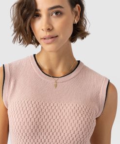 Saint + Sofia Women’s Honeycomb Sleeveless Rib Knit – Pale Pink | Pale Pink