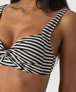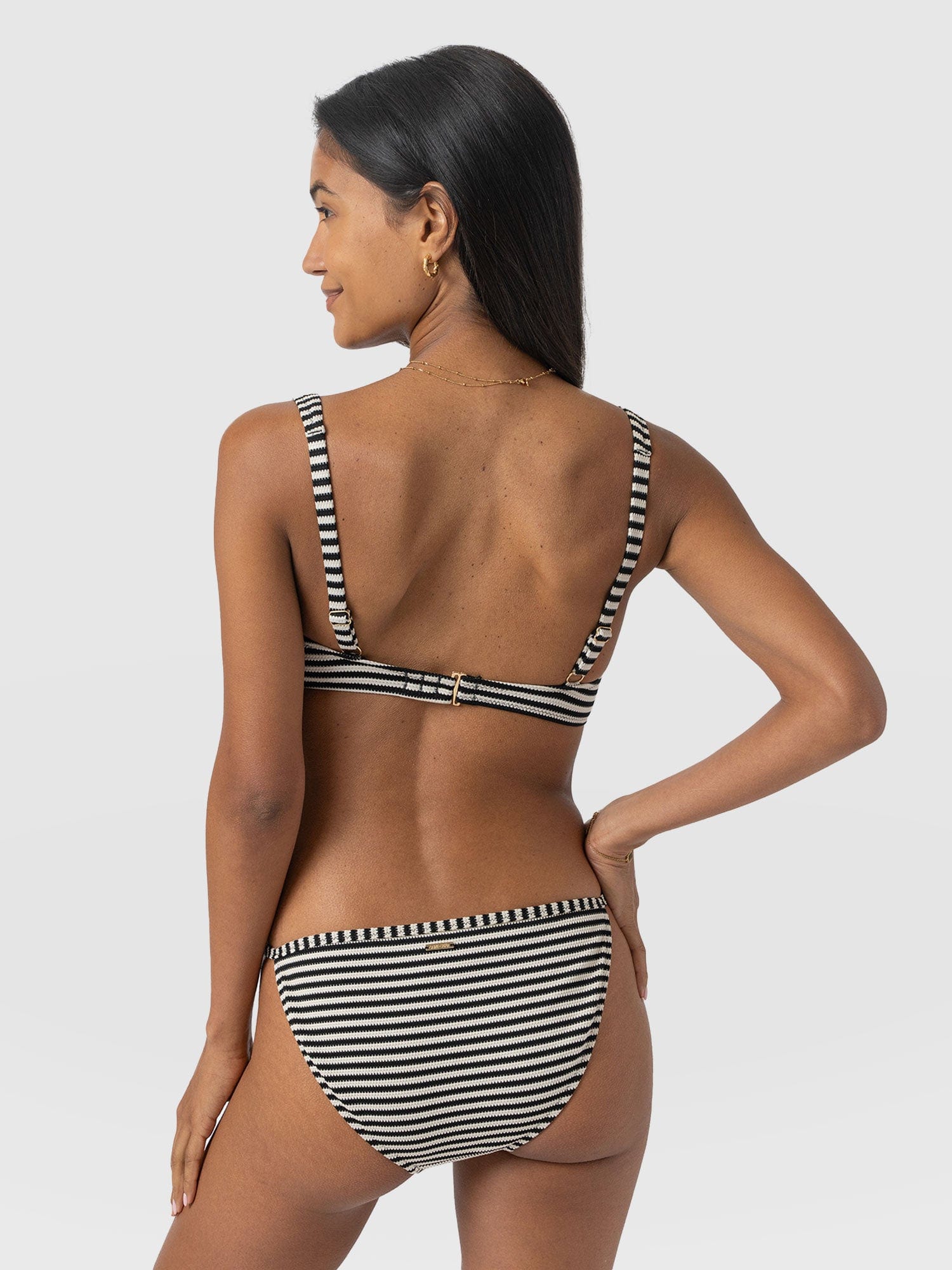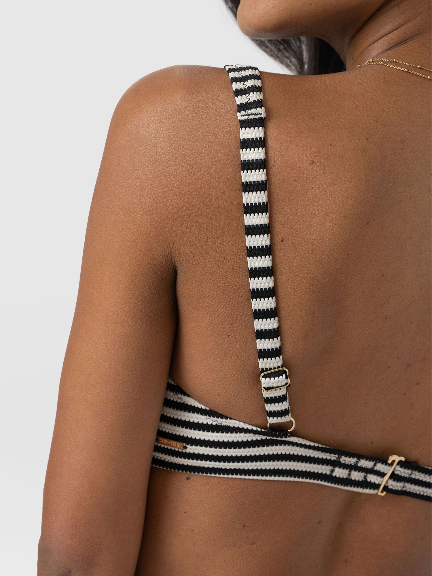 Meet Jesse: A Twist Front Bikini Top in our textured Stripe print. This wide-strap design is handmade from an Italian fabric with built-in UV protection and moulded cups. It’s shaped to a twist-front design that helps to sculpt your figure and fastens with a gold-toned metal clasp at the back. Pair yours with the matching Alba Bikini Bottoms to complete the beach-ready look.