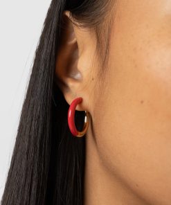 Saint + Sofia Women’s Jewelry Enamel Hoop Earrings – Gold/red | Gold & Red