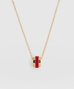 Saint + Sofia Women’s Jewelry Enamel Stripe Charm Necklace – Gold/red | Gold & Red