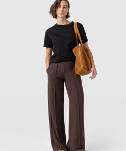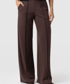 The Keller Wide Leg Pant in brown is a sleek and stylish addition to your wardrobe. These wide-leg trousers feature a front pintuck and slant pockets for added detail. The flat front with elastic at the waist ensures a comfortable and flattering fit. The versatile shade makes it easy to pair with any top or accessory. Whether you dress them up with heels and a blouse or keep it casual with sneakers and a T-shirt, the Keller Wide Leg Pant is perfect for any occasion.