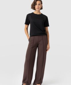 The Keller Wide Leg Pant in brown is a sleek and stylish addition to your wardrobe. These wide-leg trousers feature a front pintuck and slant pockets for added detail. The flat front with elastic at the waist ensures a comfortable and flattering fit. The versatile shade makes it easy to pair with any top or accessory. Whether you dress them up with heels and a blouse or keep it casual with sneakers and a T-shirt, the Keller Wide Leg Pant is perfect for any occasion.