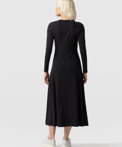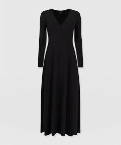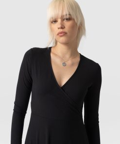 The Maggie Wrap Dress is a beautiful midi and handmade using a soft and sustainable eco-viscose. This chic style features a skin-baring V-neckline mock wrap and a full A-line skirt. Thanks to its long sleeves, it’s perfect for styling all year round; slip yours on in the summer with sneakers and in the winter with a jacket, tights, and boots.