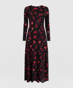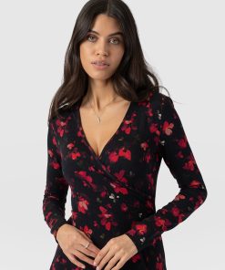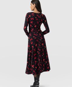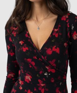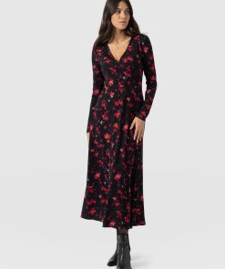 The Maggie Wrap Dress is a beautiful midi cloaked in our floral Pink Aurora print and handmade by artisans in Europe who use a soft and sustainable eco-viscose. This chic style features a skin-baring V-neckline mock wrap and a full A-line skirt. Thanks to its long sleeves, it’s perfect for styling all year round; slip yours on in the summer with trainers and in the winter with a jacket, tights, and boots.