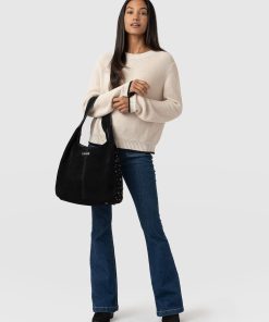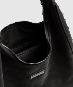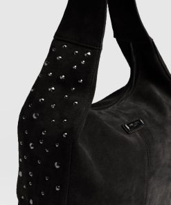 Meet the Margot Hobo Bag in black. This contemporary style is made by hand and shaped from pure suede to a chic hobo-style silhouette with a wide shoulder strap. For a touch of edgy elegance, glimmering studs are decorated down the sides to make sure you catch the eye of everyone who passes by. Inside, you’ll find a roomy main compartment and plenty of pockets to store all your essentials.