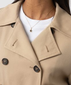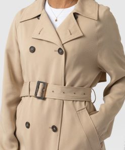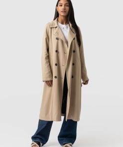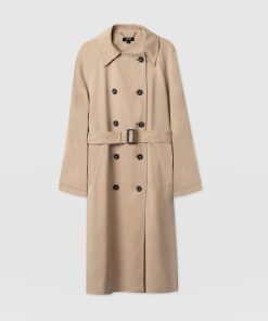 We created the Marion trench in beige as a classic outer layer to add to your collection. Cut from a light, woven Tencel fabric it’s shaped to a double-breasted silhouette with a collared neckline and long raglan sleeves. Then, for a cinched figure, we added a buckled belt at the waist that can be fully adjusted to suit any frame. Wear with your favourite boots for spring, autumn, and beyond.