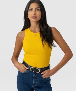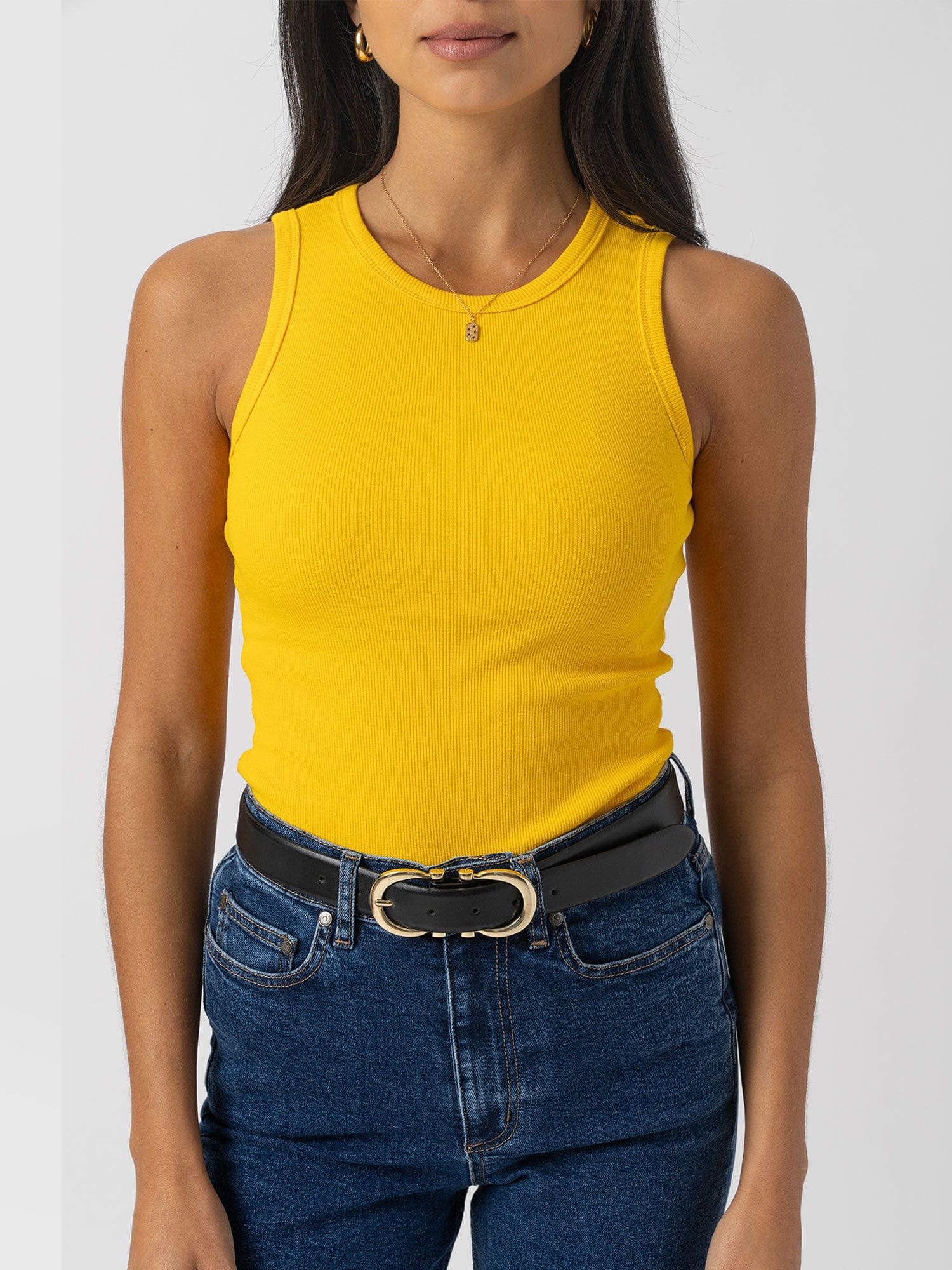 Let’s take it back to basics – after all, they form the core of our wardrobe. And ready for year-round layering or effortless styling, the Nova Racer Vest in Yellow is set to be your new clothing staple. This timeless design is handmade from stretch-infused organic cotton and is shaped to a classic scoop neck style with a slim fit that’s perfect for slipping under your favourite knits or jackets. A gentle rib finish offers a touch of interest, and with plenty of colours to choose from, there’s a hue for every occasion.