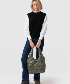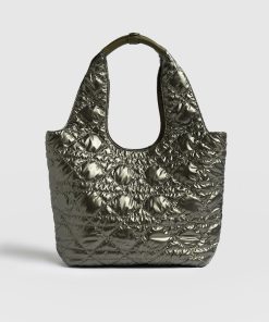 Saint + Sofia Women’s Quilted Stella Shoulder Tote Bag – Metallic Khaki | Metallic Khaki