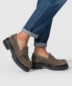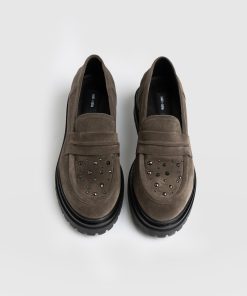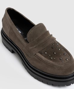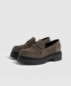 Handmade in Italy using the finest suede, the Raine Loafers in taupe are a classic pair to add to any wardrobe. Their chunky sole makes them perfect for creating looks with attitude, while the soft feel provides instantly comfortable wear. Plus, the hexagonal stud details that glitter the front help to add a touch of sparkle to everyday styles. Slip into them with jeans, skirts, or dresses – the choice is yours.