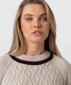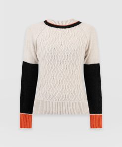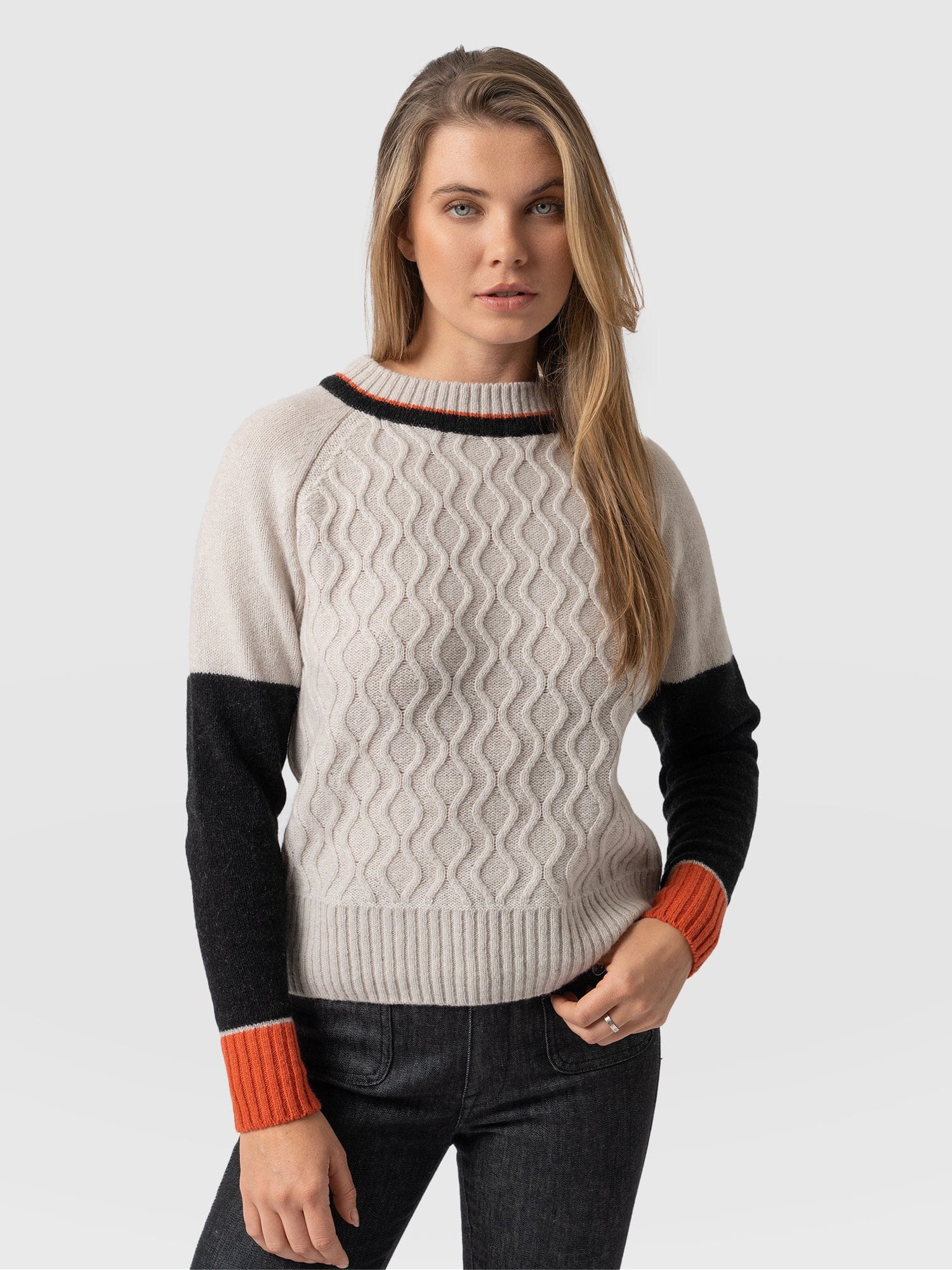 Our Rayner Cashmere Sweater in Black, Beige and Orange is an elegant and exciting update to your cashmere collection. Crafted from a soft Italian cashmere blend, the Rayner features a luscious cable design on the front, paired with contrasting colour block panels on the sleeves and neckline. Pair it effortlessly with Spencer Pant in Brown or the sleek Cambridge Tailored Pant in Black for a stylish look.