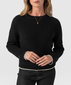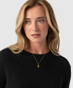 A transitional knit designed for the changing seasons, the Remy Crop Sweater in black boasts a chunky rib stitch to keep you warm when the weather shifts to cooler temperatures. Its regular-fitting silhouette and crew neckline are handmade using soft and smooth organic cotton and trimmed with contrasting tipping along the cuff and hem for an elegant finish. Dress down with high-waisted jeans and trainers, or style up with the Bonham Leather Shorts and boots.