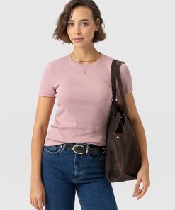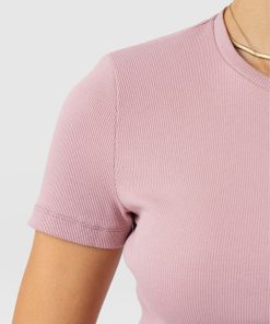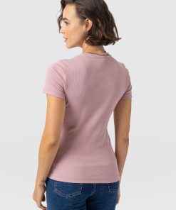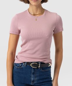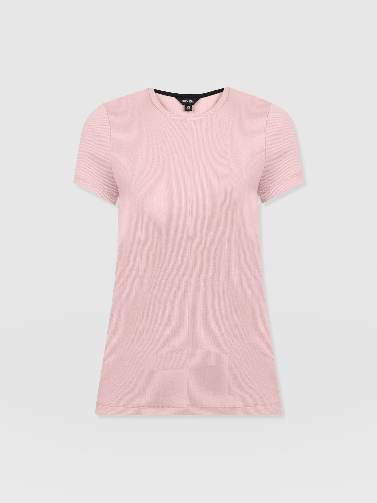 Saint + Sofia Women’s Ribbed Short Sleeve Tee – Pale Pink | Pale Pink
