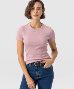 Saint + Sofia Women’s Ribbed Short Sleeve Tee – Pale Pink | Pale Pink