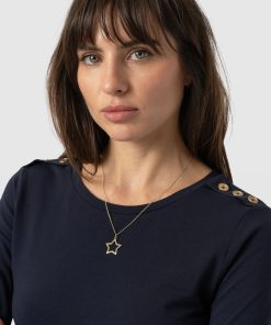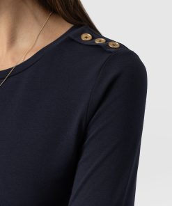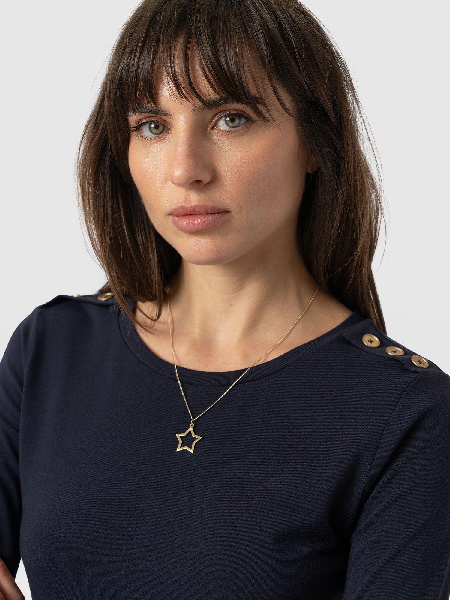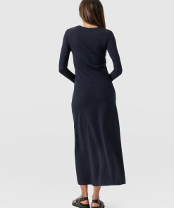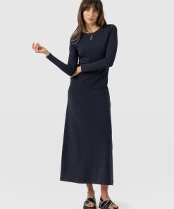 A comfortable maxi dress in navy, made with the softest organic cotton and beautiful gold button detail. Designed with a figure hugging shape and with a full length. We make these individually by hand in our studios in Europe to ensure the perfect fit and feel that’s true to size. We use a soft, smooth organic cotton with a little added stretch. Pair with sandals, slides or sneakers for a casual look on weekends or with boots / heels for something a bit more formal.